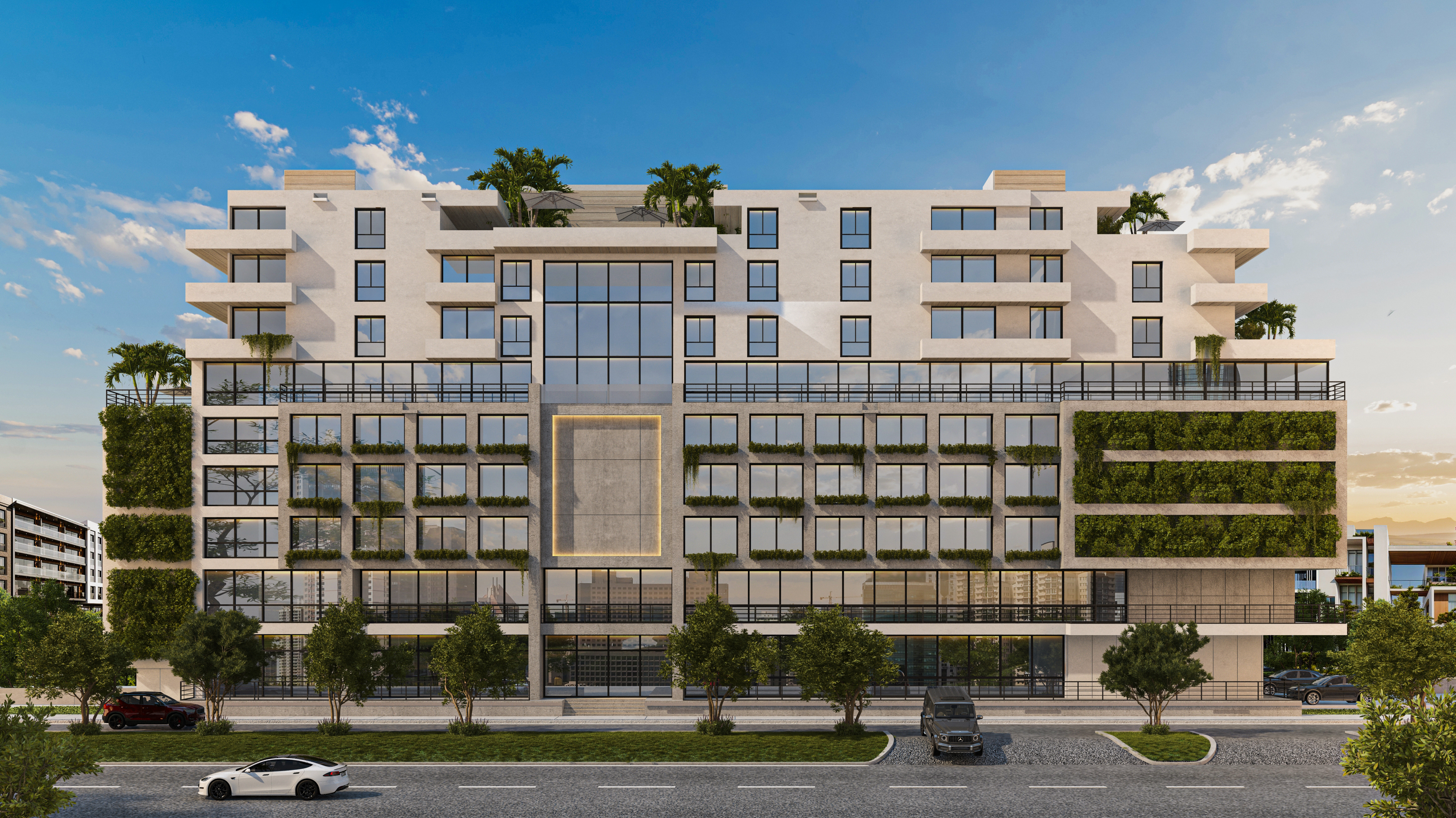Jewish Chabad with school, community center, synagogue and 3 levels of parking hidden behind living green walls.